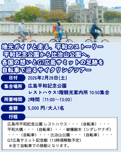 2日間限定 ピースツーリズム参加者募集中! 【2月17日(火)】 ・被爆電車・VRツアー(英語ガイド) 被爆電車に乗車し、平和記念公園にて”あの日”から今を辿るVR...