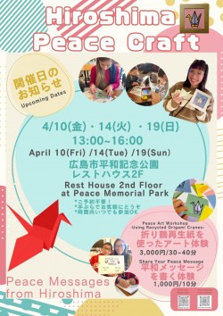 来月も、下記日程にて 「折り鶴の再生紙を使って思い思いの願いを表現するアート体験」や、 「平和メッセージを書く体験」ができるワークショップを開催いたします。 こ...