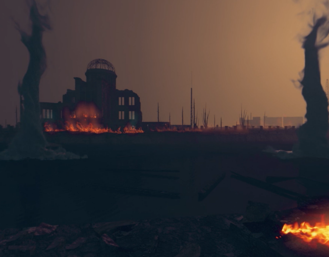 VRで当時のヒロシマを再現した世界に入り込むことで、リアルに感じていただく
